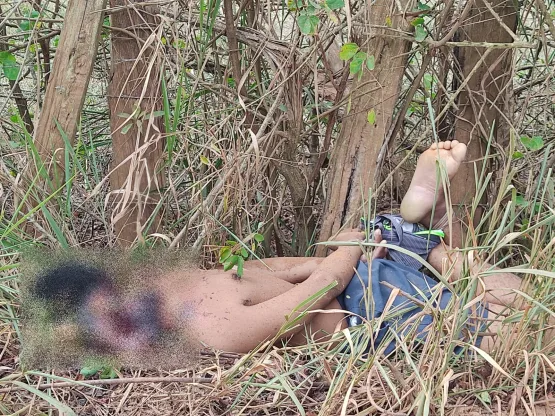 Ao se depararem com a cena, os policiais constataram que o corpo do jovem que vestia apenas uma bermuda preta estava amordaçado e com as mãos amarradas junto aos pés. Além disso, havia um corte profundo na garganta, sugerindo o uso de um facão ou faca como arma do crime. A gravidade dos ferimentos e a necessidade de esclarecer os fatos levaram a Polícia Civil e a Polícia Técnica a serem acionadas e comparecerem à cena.